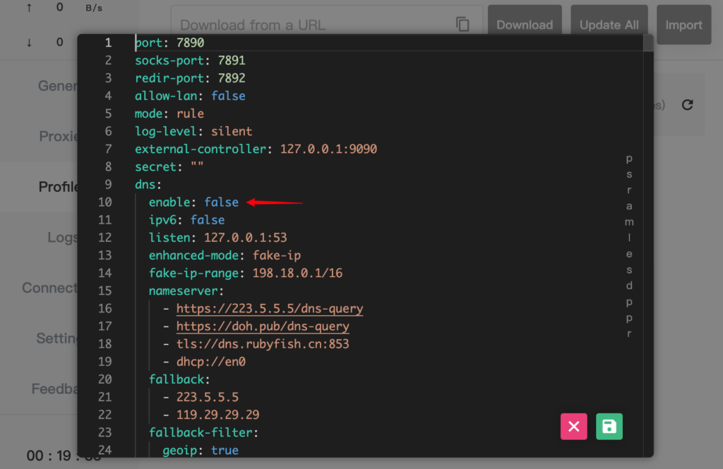 dns被clash接管了,所以需要关闭dns功能,将此项配置true->false